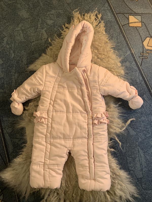 Теплий комбінезон для дівчинки. Є рукавички, можна відєднати. Ніжки відкриті. Приємний на дотик і гіпоалергенний.
