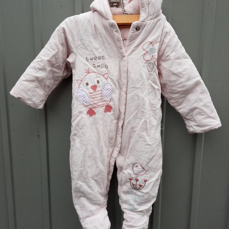 Стан б/у,досить хороший.Заміри:полуобхват грудей-30см,плечі-24см,зріст-74см,довжина рукавів-28см,довжина внутрішнього шва рукавів-24см,Feline,Marks & Spencer,100%polyester,підкладка-100%cotton,made in China.На 3-6 місяців.