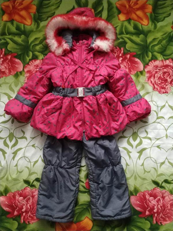 Зимняя куртка,комбинезон для девочки 4-5 лет.можно и раньше оживать-смотрите замеры. Куртка в отличном состоянии, без нюансов, а комбинезон идет в подарок-так как по самому низу зашито-смотрите последнюю фото. Куртка длина-50 см,ширина под ручками -36 см,рукав от плеча-39 см,плече-9 см, капешон-отстегивается. Штани-довжина по боку-64 см,шаговий-39 см. Перешлю по любой почте