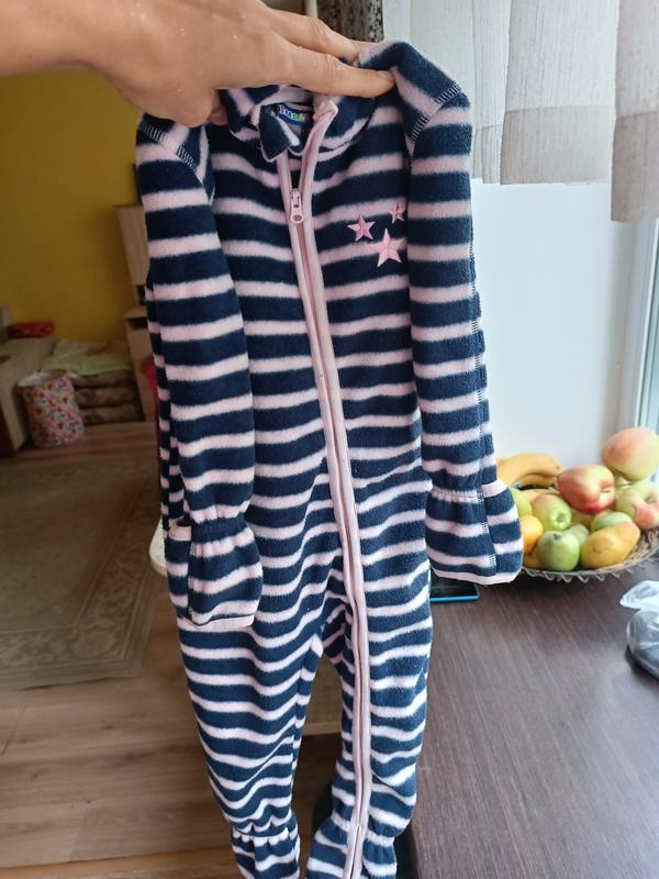 В идеальном состоянии, не увлажненный, флис в виде нового. Очень теплый. Под зимний комбинезон одевали, ребенок зимой никогда не мерзла. Флис плотный. Lupilu - Германия. Сильно большемерит. Размер не соответствует по набору. идет на 86-92-98 мы одевали с 1-го века 3 мес, ребенок рос. Длина от плеча 76 см