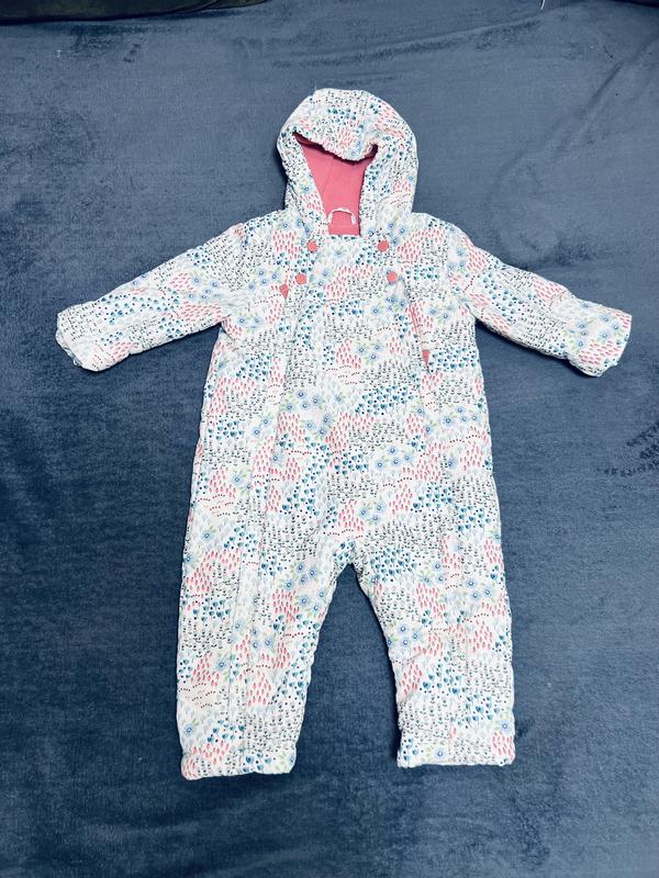 Комбинезон Mark&Spenser, в хорошем состоянии Длина рукава 30 см По талии 36 см Длина костюмчика от плеча 73 см, Наполнитель хорошего качества при стирке не сбивается в кучу .Дополнительно отправлю фото. С замерами. К изделию есть шапка и бртиночеи , смотрите моих объявлениях.
