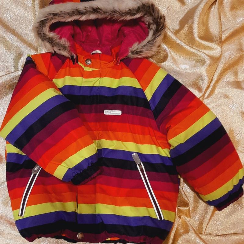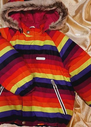 Теплый зимний комплект, из куртки и полукомбинезона. Длина брюк регулируется в верхней части, куртка с капюшоном. Размер комплекта 92 см. Куртка и штанишки с светоотражателями.
