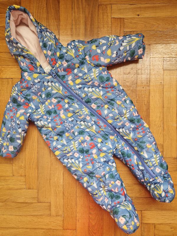брендовый комбинезон с флисовой подкладкой на осень, теплую зиму в красивом состоянии. На возраст 3-6месяц. Длина 59см, длина рукава 23см