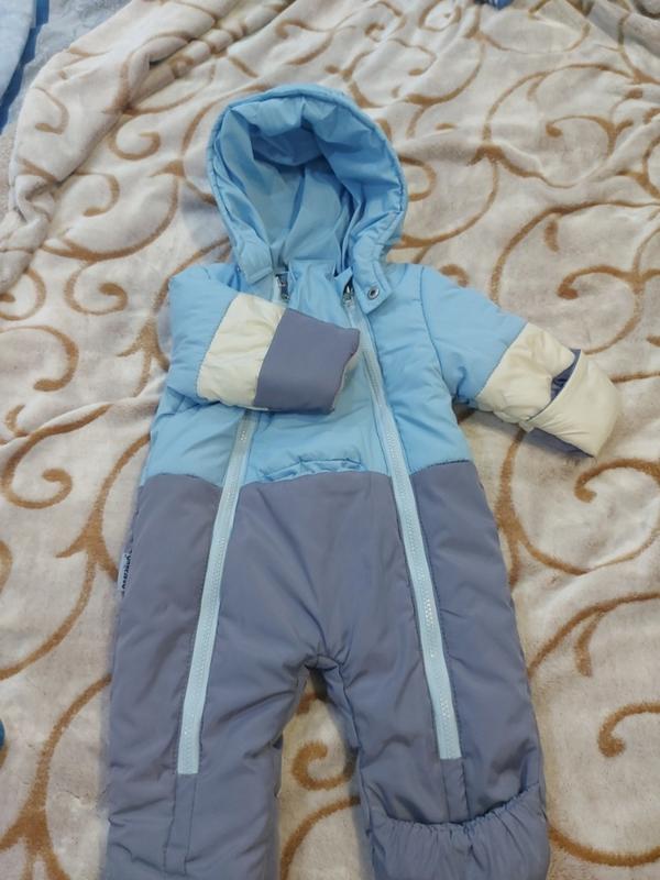 комбинезон (62-68) на холодную осень теплую зиму. очень красивый и удобный, ножки и ручки можно прятать. состояние нового, вдели несколько раз (быстро выросли) на самом деле выглядит красивее чем на фото
