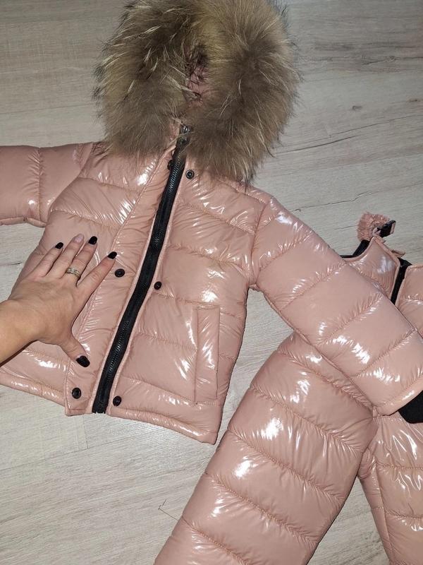 Зимний детский комбинезон из плащёвки монклер с шикарным мехом енот