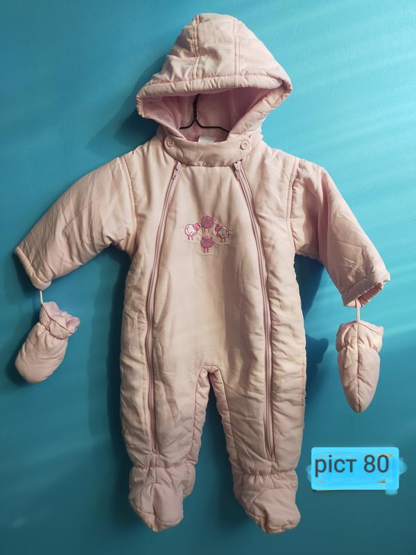 Комбинезон для девинки, рост 80 см, и зимний больше на осень. Ножки закрытые, перчатки.