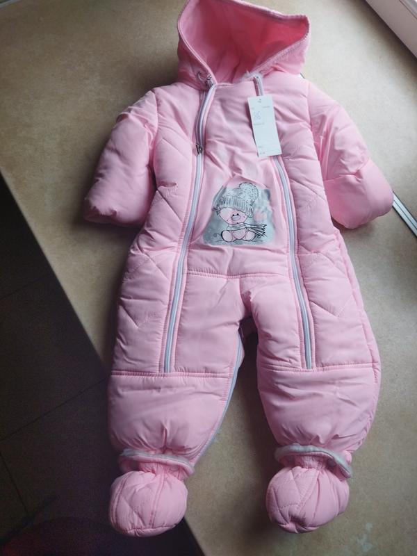Очень теплый и красивый трансформер для девочки р.86.Длина комбинезона 74,мешочка 64,плечи 30,рукав 27 (рукки прячутся)