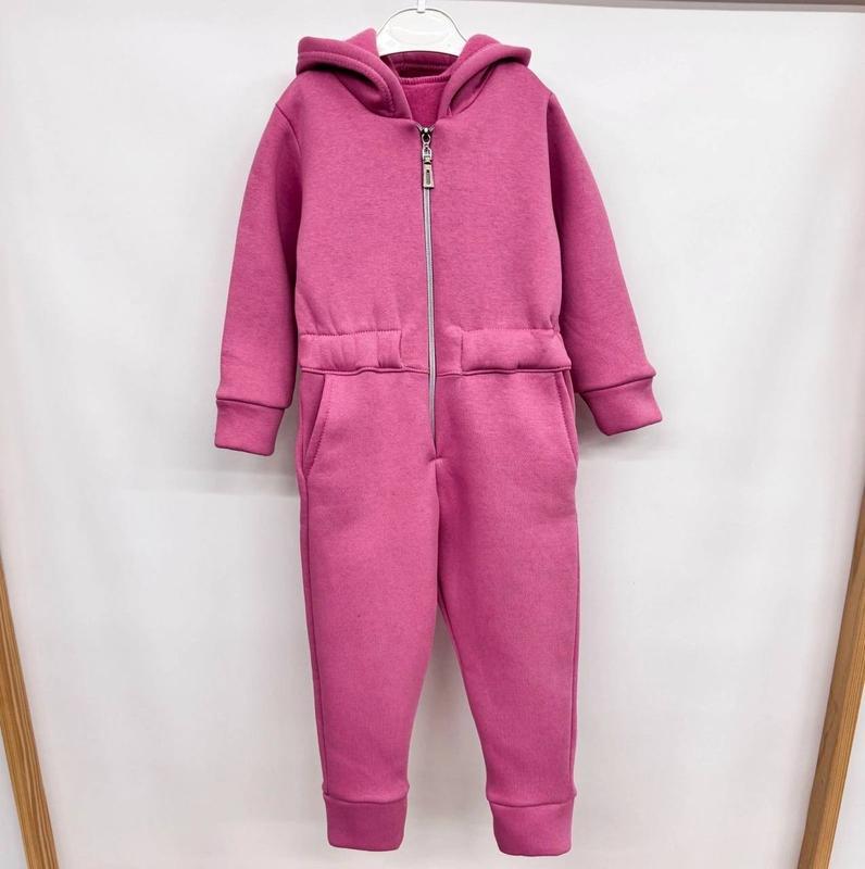 Комбінезон для хлопчика і дівчинки. Розміри від 86 до 152. Ціна залежить від розміру. Тканина начіс 3-х нитка піньє, матеріал дуже теплий. Довгий рукав, застібається на блискавці спереду, є капюшон, в пояс вставлена пришивна резинка, манжети з основної тканини.