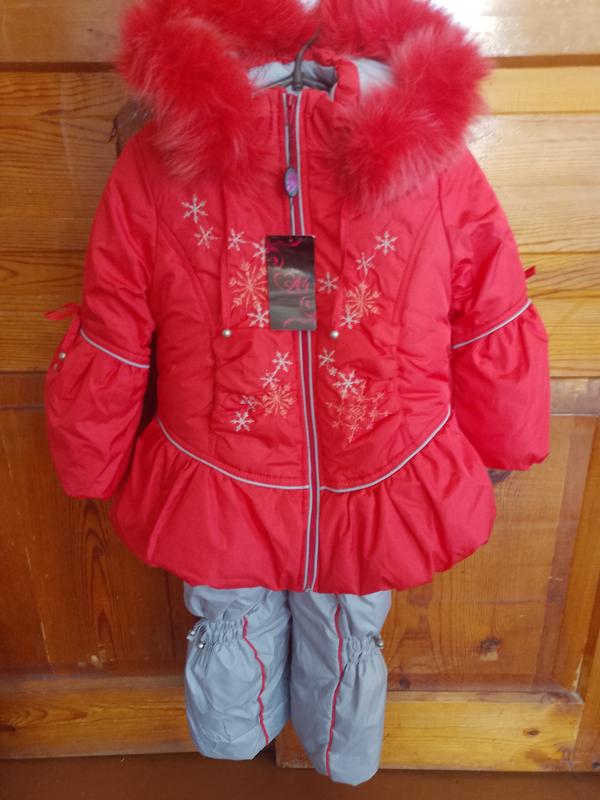 Комбинезон для девочки на синтепоне. Подстежка снимается. На капюшоне мех натуральный. Примерно на 4 года. Производство Украина.