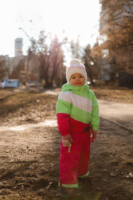 Ідеальний стан загалом, яскравий колір, фірмовий дефекти на низу штанів-місцями протерлися Від +5 до -5-7ʼС Холодна осінь-весна, тепла зима