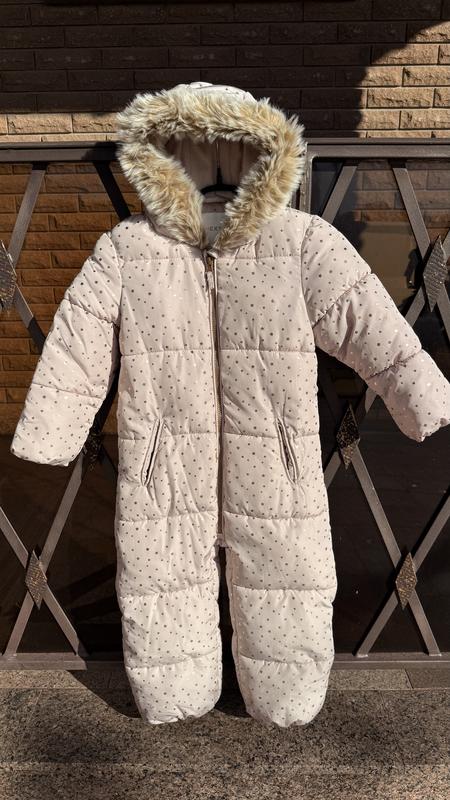 Комбінезон Next в чудовому стані, розмір 104, на вік 3-4 роки, на флісі, зимовий. Колір бежевий в золоті зірочки . Довжина комбінезону- 91 см, довжина рукава- 37 см, довжина кроку - 35 см, ширина - 37 см.