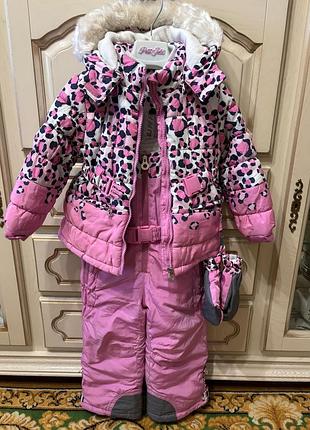 Стильный, теплый, раздельный комбинезон для девочки. Термо, на флисе. Фирменный, Италия. Фирма - Chicco. В отличном состоянии. На рост - 98см. Капюшон сьемный, оторочен мехом. Длина куртки- 40см. Длина рукава-33 см. Длина комбинезона- 72см. Длина по ноге- 35см.