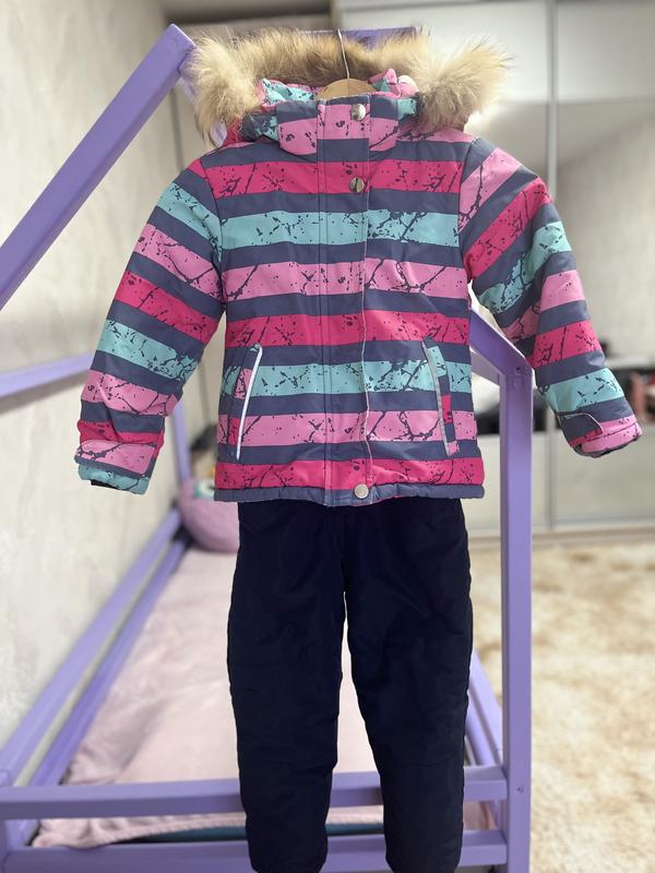 Розмір 104-110 ,після однієї дитини ,без плям є незначні сліди носки ,місцями десь затерте але цього не дуже видно при носці і треба запиши біля замка на фото все видно в ціну включено !загалом гарненький ,зручний ,теплий комбез