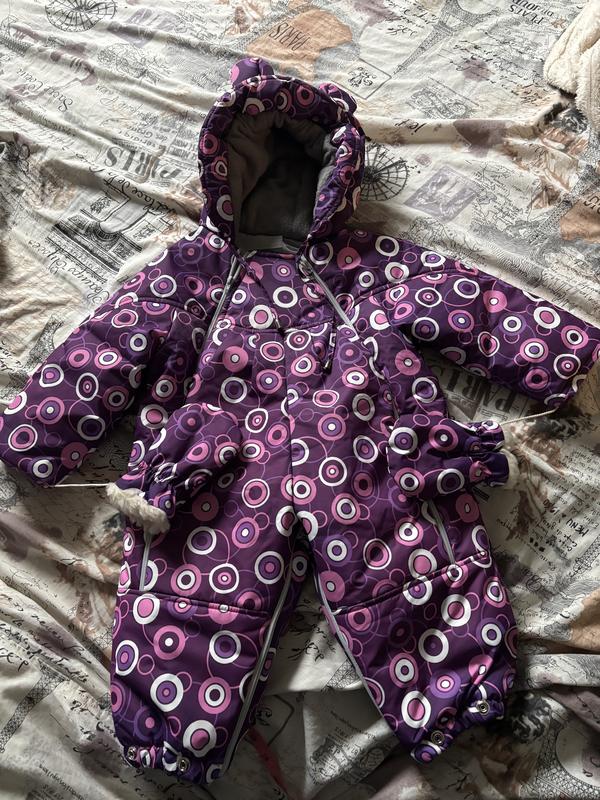 Новий комбінезон для дівчинки.Всередині хутро-підкладка на липучках,тому комбінезон можна одягати і восени(навесні).Є руквавички та черевички на кнопках(відстібаються також) Довжина виробу-70см Напів обхват грудей-39 см Довжина рукава-42 см Розмір 80-92