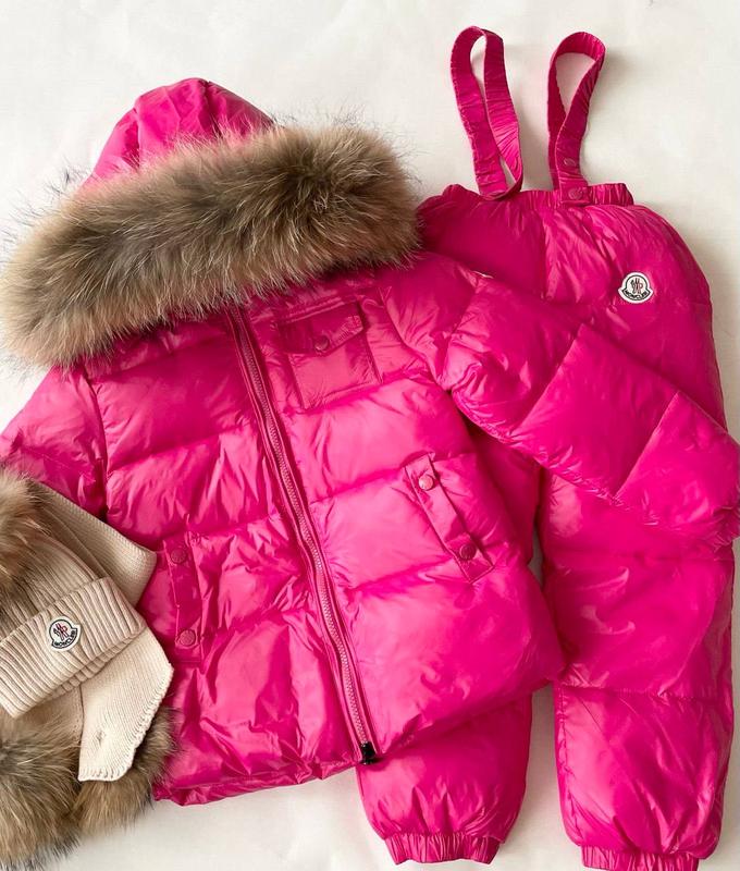Роздільний комбінезон Монклер малинового кольору. Комбінезон дуже теплий, наповнений пухом білої качки. Густе хутро. Розмір 0 на ріст від 78 до 88 см.