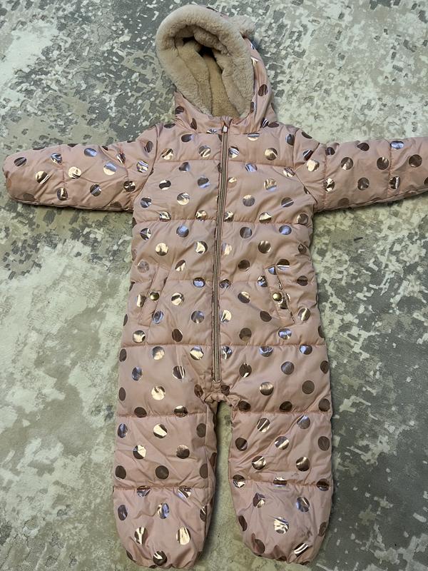Комбінезон в ідеальному стані, не збитий, єдиний нюанс що подекуди стертий блиск з Горохів, але видно якщо придивитись(фото додала)