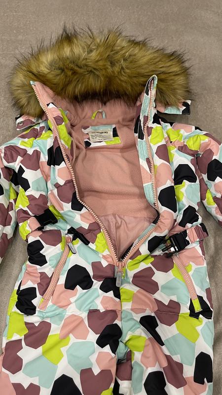 Чудовий, яскравий, теплий і зручний комбінезон для дівчинки Waikiki 122-128, 7-8 років. Яскравий принт, манжети, захисні снігові гетри, світловідбивні елементи. Капюшон оздоблений штучним хутром, на блискавці, який можна зняти за необхідності. Підійде для катання на лижах або сноуборді. Стан ідеальний. Заміри-на фото. Зроблені на власний розсуд. Додатково надам ще заміри за необхідності.