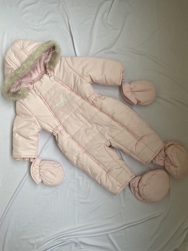 После химчистки Демисезонный комбинезон, фирмы MAYORAL, размер 68(4-6 месяцев), розового цвета, с варежками и пинетками(на кнопках), наполнитель синтепон