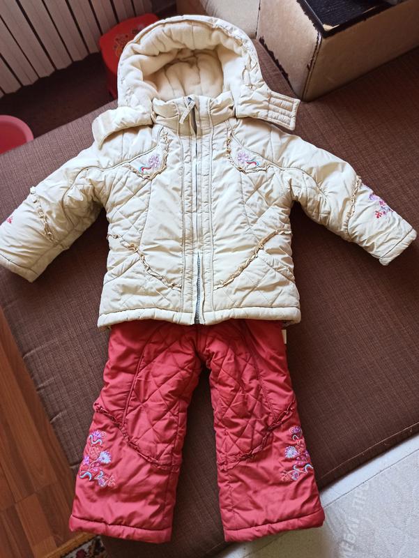 комбинезон зимний для девочки, возраст 2-3 года, куртка может подойти и на 4 года, длина куртки 42 см, ПОГ 38 см, рукав 35 см, капюшон отстегивается, длина штанов 80 см, шаг 29 см, ПОБ 37 см, молния менялась- рабочая.