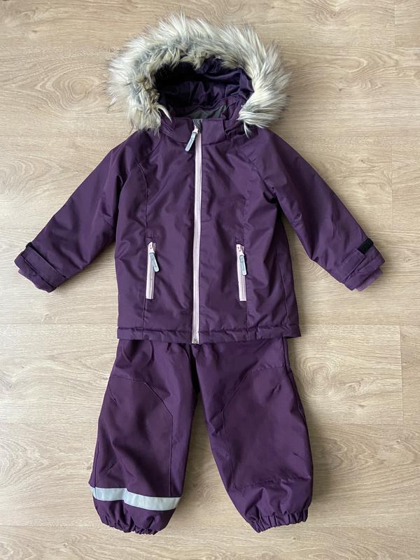 Комплект в ідеальному стані. Тканина міцна та цупка. Куртка та штани теплі, але не об'єднання роз'ємні, тому дуже зручний при щоденних прогулянках . Світловідбиваючі елементи на куртці та штанях. Куртка має відстібний капюшон, окремо також можна відстібнути хутро. Всередині куртка в грудній частині має додатковий флісовий куля.Штани мають зручне регулювання довжини. Внизу штани на резинці. Після 1 дитини, стан справді відмінний, без н'юанісів.