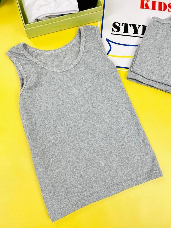 Майка для хлопчика пошита з натурального бавовняного полотна - кулір. Це легке і дихаюче полотно, яке не доставляє дискомфорту під час носіння і не викликає алергії. Майка - однотонна, по краях оброблена бейкою, низ - під розпошив. Такий виріб можна з легкістю підчіплювати під будь-яку водолазку, светр або сорочку темного кольору. Так само можна просто спати в ній або ходити по будинку. Розміри 30(92-100) 32(104-110) 34(110-116) 36(116-128) 38(128-134) 40(134-140) 42(140-146)