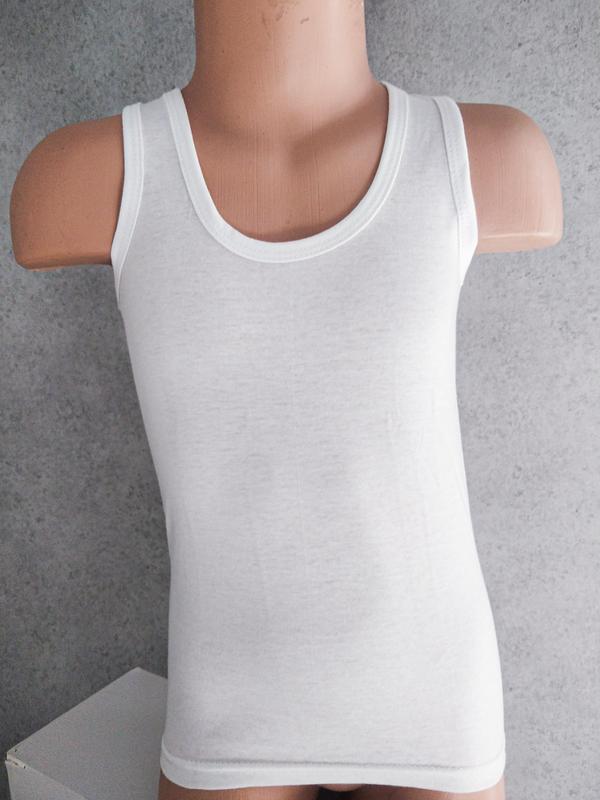 Майки для хлопчика білі Розмір №28 - 2-3 роки ог 28, довжина 45 №30 - 4-5 роки ог 30, довжина 48 №32 - 6-7 роки ог 32, довжина 52 №34 - 8-9 роки ог 34, довжина 56 №36 - 10-11роки ог 36, довжина 60 №38 - 12-13роки ог 38, довжина 62 №40 - 14-15 роки ог 40, довжина 64 Тканина кулір (100% бавовна) Виробник Mtex Україна