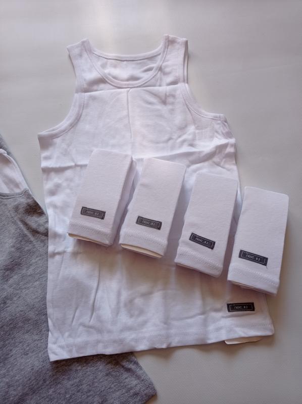Цена за 1 штуку Цена указана при условии заказа от 300 грн. В наличии ТОЛЬКО белые с нашивкой next Невероятно комфортная и приятная к телу маечка из высококачественного трикотажа. Ткань не выгорает, не теряет яркость красок, не деформируется в процессе использования. Английское качество. Под мышками 34 см длина 50 см длина из под мышки 34,5 см белые: 100% хлопок.