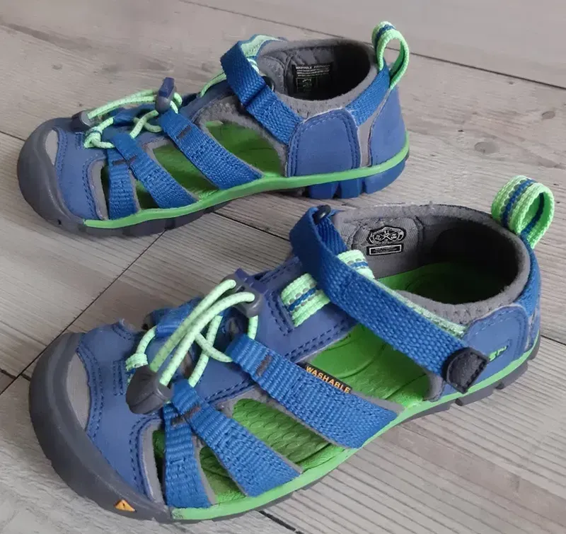 Сандалии от американского производителя KEEN. Очень практичны для любой деятельности ребенка, будь то обычные прогулки или путешествия на природу, в горы, в поход, в лагерь. Обувь брендовая и надежная, качественная и удобная. Материал: экокожа, текстиль. На липучку. Состояние: отличное. Особенности: -легкие и водостойкие -быстрое закрытие на липучке -прочная фиксация ноги в обуви -также подходят для водных игр -антибактериальная стелька и подкладка -запатентованная защита пальцев -формированная стелька EVA -подошва с разнонаправленным рельефом Резиновая подошва. Стелька 18,3 см. Размер 29. Полностью соответствуют фото!