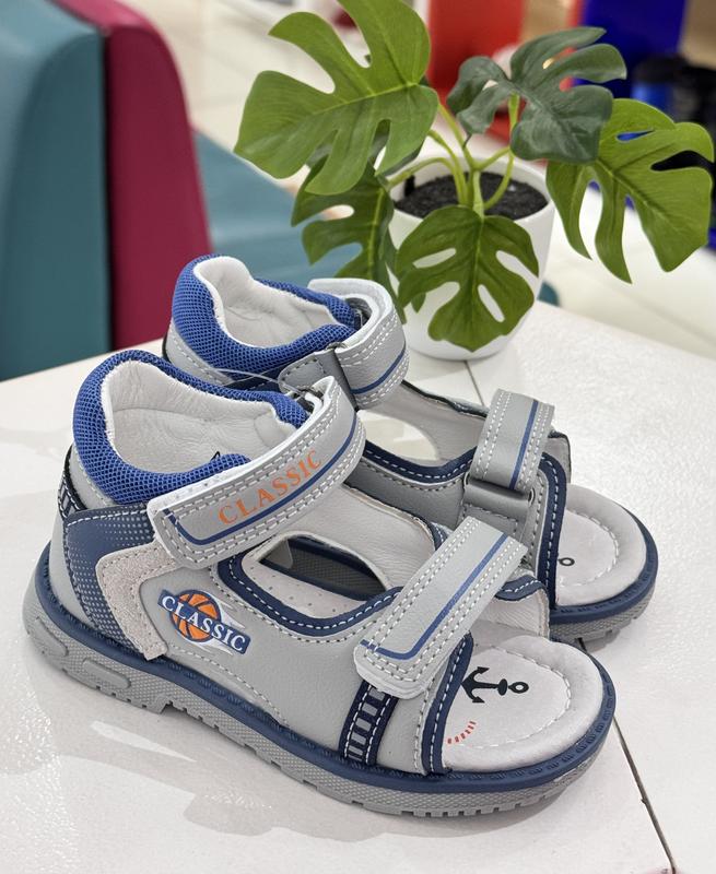 Зручні та легкі босоніжки для хлопчиків. Виготовлені з екошкіри, устілка шкіряна з супінатором. Мають дві активних липучки, твердий задник, каблук Томаса, гнучку та легку підошву. Заміри вказані від краю до краю 23 розмір- 14,5 см 25 розмір -15,6 см 26 розмір - 16,5 см 27 розмір - 17 см 28 розмір -18 см