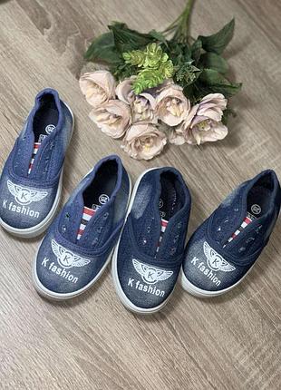 кеды прогулочные,джинсовые .круто сидят на ноге.по центру на резиночке . р 25-30.отправка каждый день.цена самая низкая.