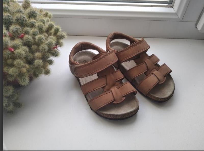 Классные фирменные Marks Spencer полностью кожаные ортопедические босоножки, сандалии В отличном состоянии. Верх обуви выполнен из мягкой натуральной кожи нубук Сандалики регулируются с помощью липучек которые фиксируют ремешки. Ортопедическая стелька, аналогичная взрослой самой удобной обуви немецкого производства - Birkenstock. Подобно немецкой обуви имеет прекрасную пробковую основу стельки, которая выполняет роль отличного амортизатора. По всему периметру есть загибы,так как стопа углублена. Основа стельки - натуральная легкая гипоаллергенная пробка из латексной пропиткой. Верх стельки - мягкая натуральная кожа пожалуйста Смотрите Мои лоты-е много интересного. Экономьте на доставке.