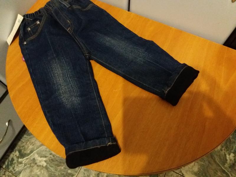 Новые с этикеткой зимние джинсы 1,5 - 2 года. Пояс на резинке. Утепление - флис. Замеры: длина по наружному шву 50 см, по внутреннему шву 30 см. ПОБ - 28 см.