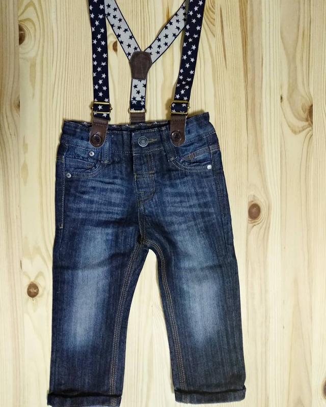 Джинсы monsoon на подтяжках на 18-24 мес ( подтяжки не родные от next, но отлично к ним подходят ) . Джинсы новые без бирки. -длина -50,5 см -ПОБ - 30.5см - пояс-25см утяжка -шаг-32см