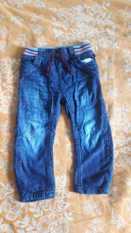 Джинсы для мальчика,размер 98.Нашита латочка,на фото видно