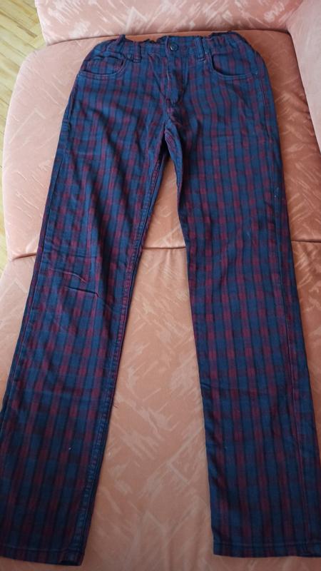 Штани для хлопчика. Ріст 140. В хорошому стані,є невеликі плямки(на фото ближче видно).Дуже зручні. Довжина 94 см. По резинці 30 см. Якщо цікавить детальніше інформація,пишіть буду рада допомогти.