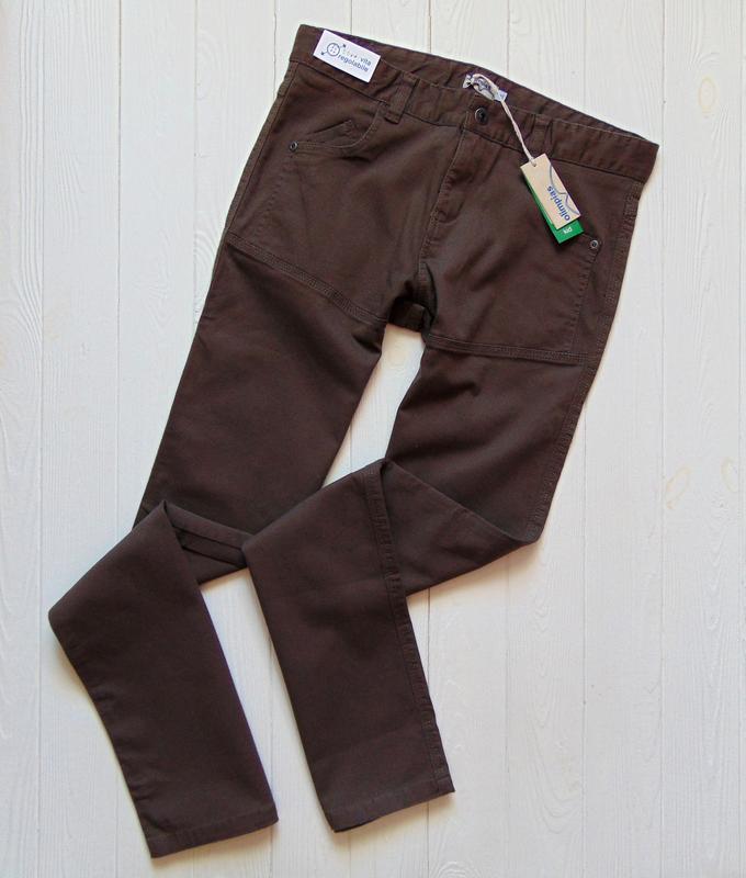 Новые чиносы для парня. Красивый цвет. Мягкий и приятный к телу материал, тянется. Шикарное качество. Olimpias. Размер 16 лет. Состояние: новые, с биркой. Состав: 98% хлопок, 2% эластан. Замеры: длина 101.5 см, шаговый шов 82 см, талия 39Х2 см, тянется до 42Х2 см, есть утяжка, бёдра 44.5Х2 см, ширина штанины в районе промежности 27.5 см, ширина штанины внизу 18.5 см, глубина посадки 26.5-32 см. Материал тянется. Цена 350 грн.