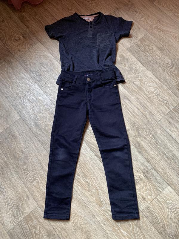 Модные темно-синие джинсы для мальчика либо в садик либо в первый класс. При покупке джинсиков, футболочка в подарок) ОТ 28 (внутри резиночка), ОБ 34, хорошо тянуться, длина 70, шаговый 50