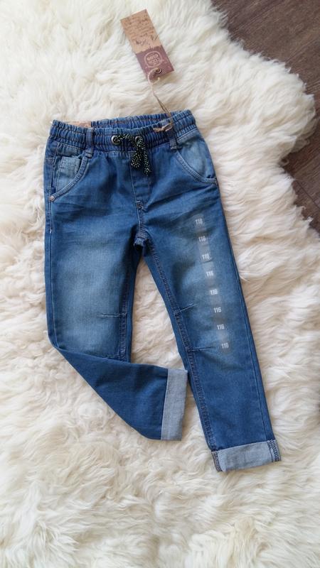 Классные джинсики с подворотами на мальчика. Модель Regular. С эффектом "потертости". Имитация ширинки. 5 функциональных карманов. Пояс на резинке, регулируется шнурком. Качество отличное! Размер по бирке 116: •длина общая - 67 см; •шаговая - 46 см; •ПОТ - 27 см; •ПОБ - 34 см. Состав: 100% хлопок.