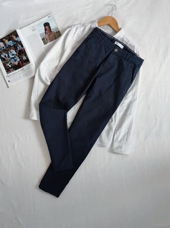 темно сині брюки від Zara для хлопця 13/14 років на зріст 164 см, з боковими кишенями, тканина котон, ширина поясу 36 см, ПО берер 46 см, довжина 96 см