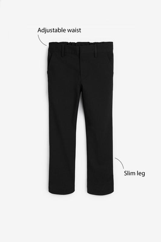 Строгие эластичные брюки Next , зауженного кроя, стандартная посадка на талии, новая коллекция. Модель с регулируемым поясом и с добавлением эластана, для дополнительного комфорта. 63% полиэстер 34% вискоза 3% эластан. Штаны черного цвета. По бирке на 10 лет. Замеры на 10 лет (140 р): длина 81 шаг 58 бедра 39.5 пояс 31.5 , регулируется резинкой и пуговицей внутри пояса штанина вверху 22 штанина внизу 15