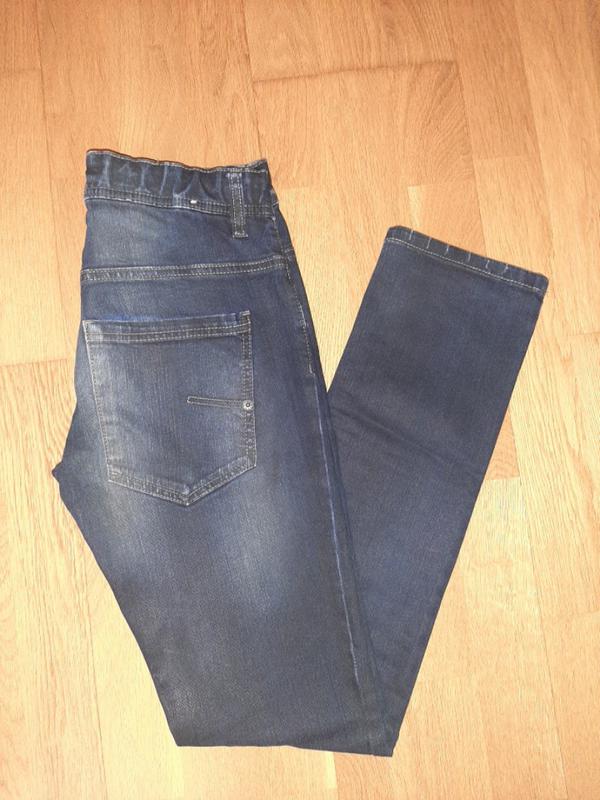 Benetton джинсы для мальчика, подростка, на рост 160см. Цвет темно-синий, есть резинка- утяжка в поясе. Замеры: ПОТ 36см. ПОБ 45см. Длина 99.5см.