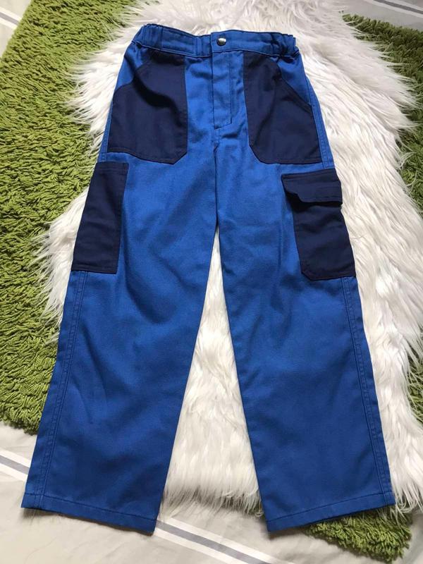 очень добротные штаны для мальчика. спецодежда. новые. замеры: пояс максимум 32, есть утяжка, длина 74, шаговый 54, ширина внизу штанины 18 см.