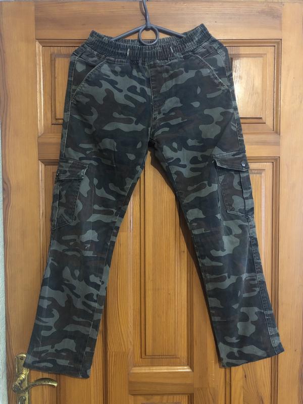 Камуфляжні штани для хлопця.Довжина-85см.Пояс-34см-тянеться до 40см.Бедра-44см.