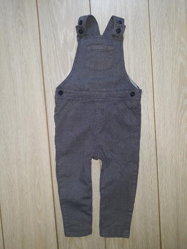 Фірмовий комбінезон хлопчику на 1,5-2,0 років. Усередині утеплений хб підкладкою. Висота і талія на ґудзиках, між ніжок кнопочки. Склад 100% бавовна. Стан відмінний Виміри: довжина по спинці від плеча 75 см, кроковий шов 27 см, довжина до памперса 48 см, талія 29,5 см, попа 31,5 см, ширина штанини внизу 13 см