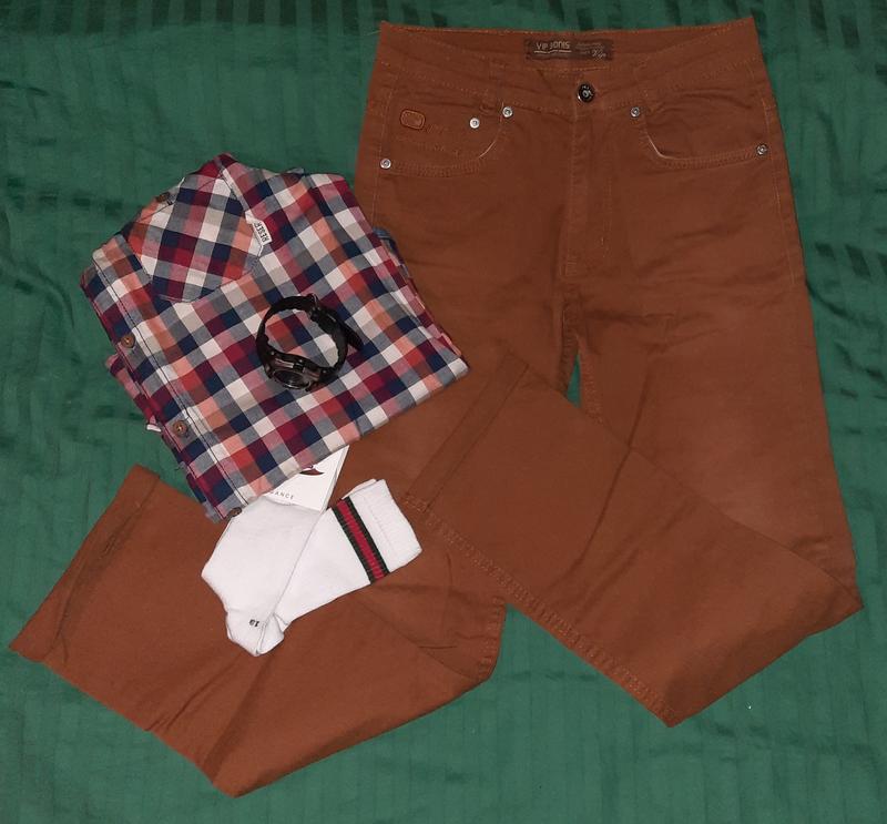 Брюки кирпичного кольору, з тоненького катону, підійдуть більш на теплу пору, спереді та ззаду по два кармани. Дуже стильні та зручні у використанні.