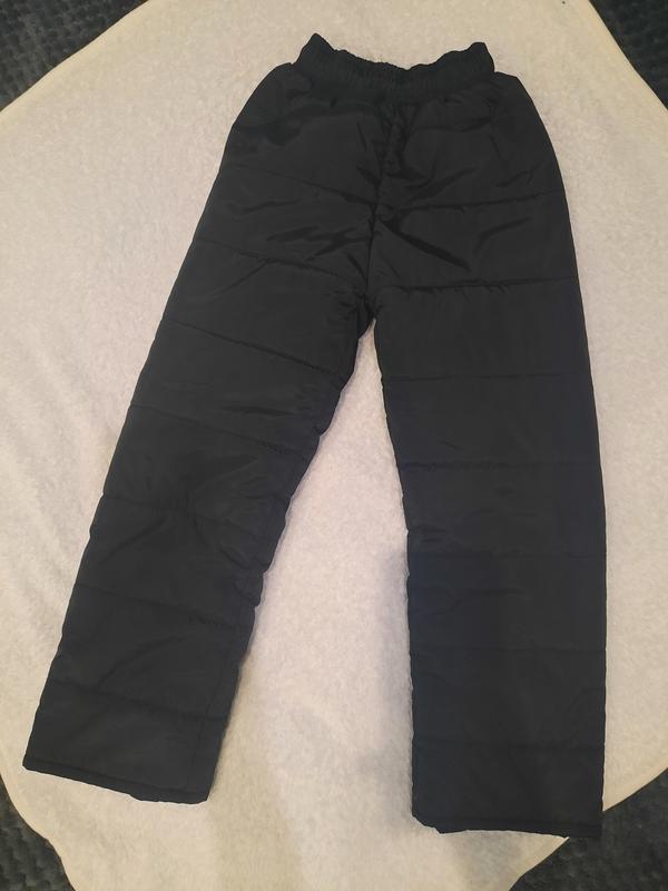 Брюки в идеальном состоянии. Верх плащевка, наполнитель синтепон, подклад- нейлон. На поясе резинка, снизу есть защита от снега. Замеры: Длина 68 см Полушаг 45 см ПОТ 19 см( резинка тянется до 29 см) ПОС 34 см Хорошее качество. Производство Украины. Без дефектов.