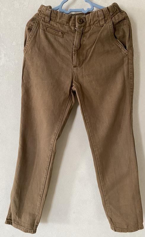 Эластичные брюки с регулируемым поясом. Застегиваются на застежку и пуговицу. Имеют карманы спереди и карман сзади.