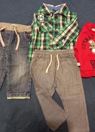 Набір одягу для хлопчика на весну. Джинси товстіші, брючки тоненькі, дуже стильні. Реглан тоненький, сорочечка майже нова, носили декілька разів. Все в чудовому стані, без ньюансів