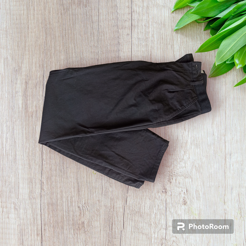 Классические брюки зауженные немного к низу. Идеально садятся по фигуре. Пояс на резинке, темно-синего цвета. Стан идеален, покупали только начастица. Размер 11-12 лет