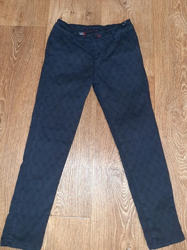 Продам очень классные стильные брюки в клетку в идеальном состоянии. Производитель Турция, они очень приятные на ощупь. Склад 98 % котон, 2% еластан. На бирке 128, 8 лет. Замеры : длина 74 см, бедра 36 см, пояс 30 см + утяжка. Цвет такой как на 1 фото - темно-синий